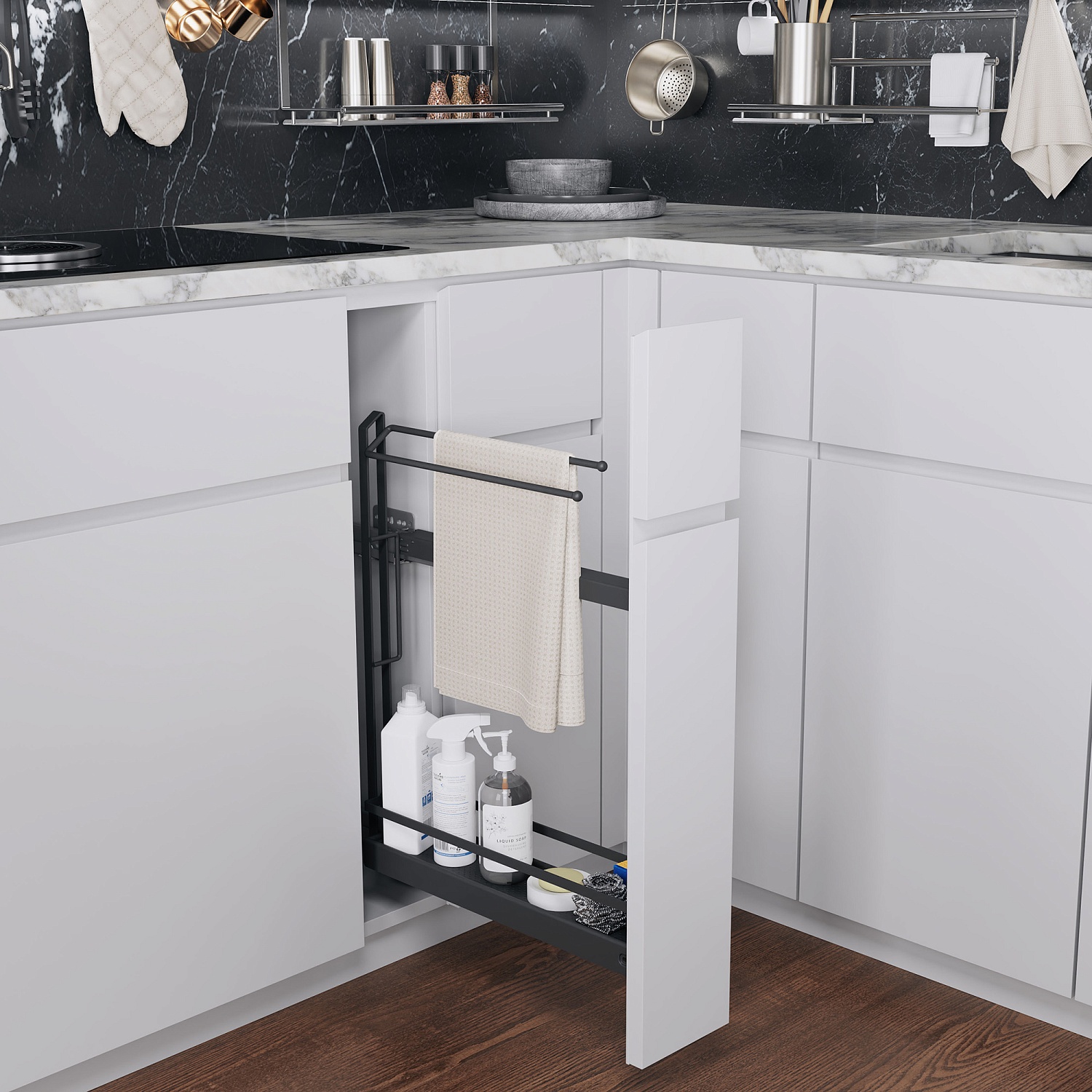 Бутылочница №15 для полотенец H 592 фасад 150 мм 3D