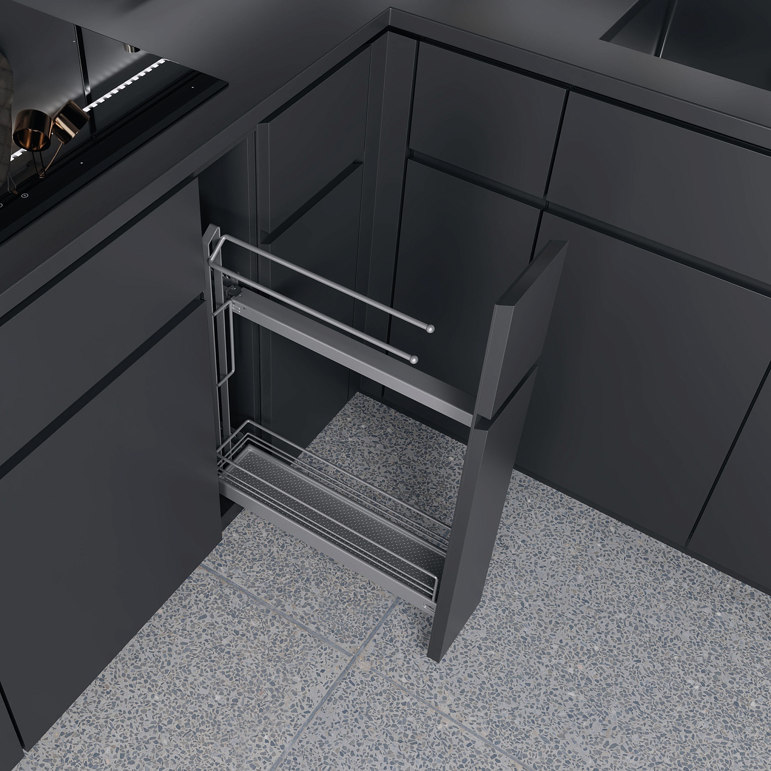 Бутылочница №15 для полотенец H 592 фасад 150 мм 3D